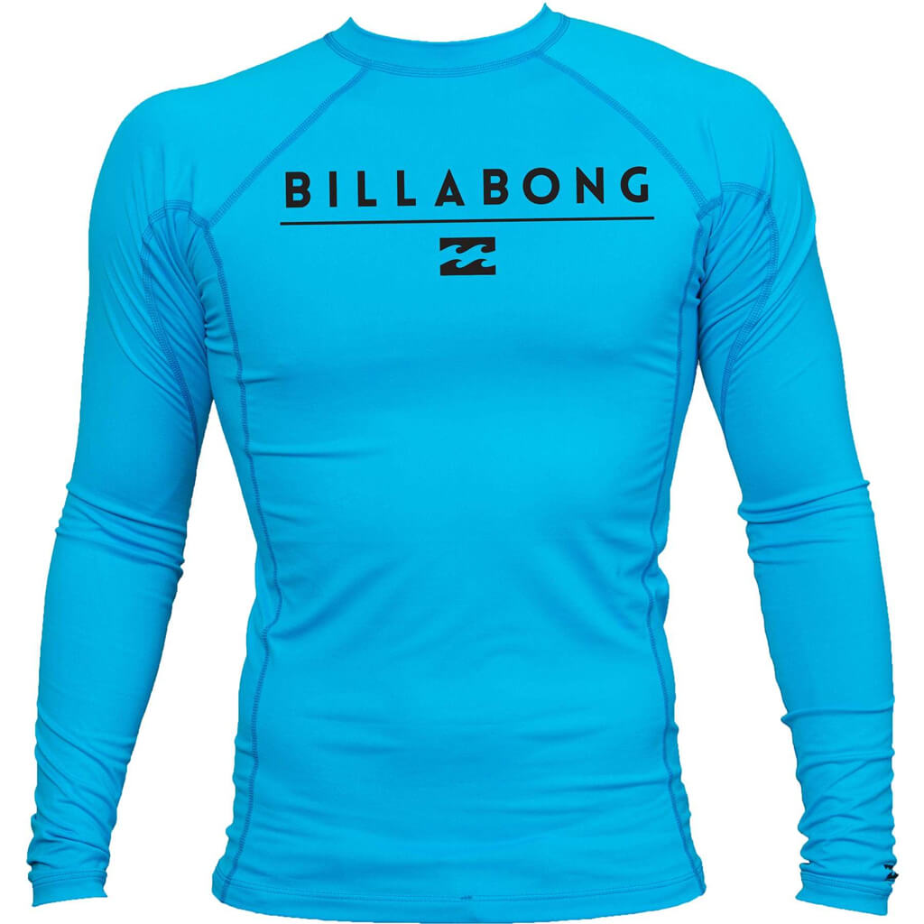 Billabong rashguards offer the ultimate in protection, fit, and functionality. Crafted from super soft and stretchy 6oz lycra spandex, these stylish rashguards feel great against the skin and are quick drying with anti-microbial properties to keep the stink away. The UPF Rating (Ultraviolet Protection Factor) is 40+ for maximum sun protection. A boardshort connector on the front allows you to attach to your trunks to keep the top from bunching up.