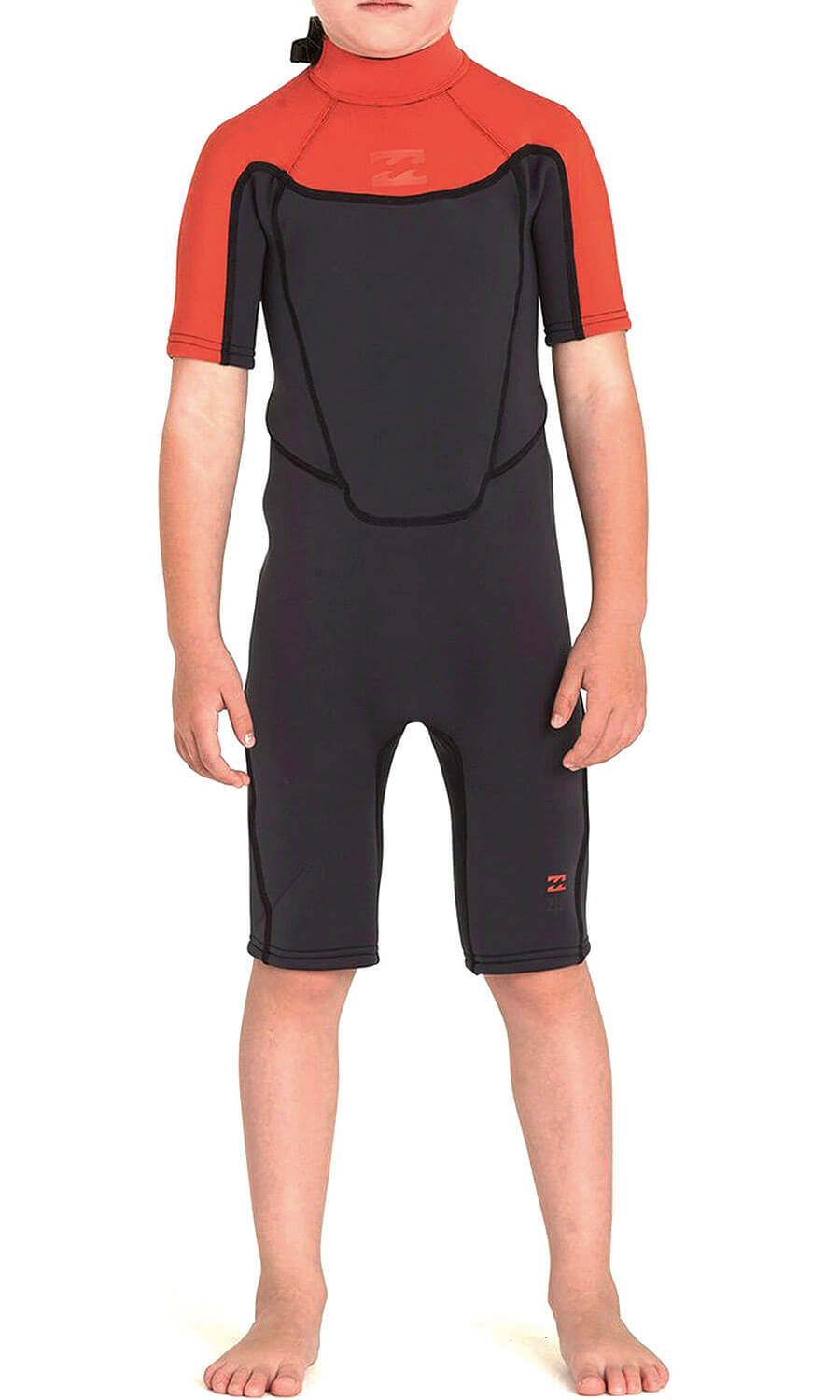 Keep the young ones protected and looking cool with this 2mm Toddler's Billabong ABSOLUTE Shorty Springsuit. Great for those warm water temps, this shorty springsuit is made with 100% stretch AX2 and lightweight neoprene so it has serious stretch and comfort. Strategically placed flatlock seams allow for unrestricted movement and comfort as well as a contour collar. And the back zipper makes entry and exit easier.