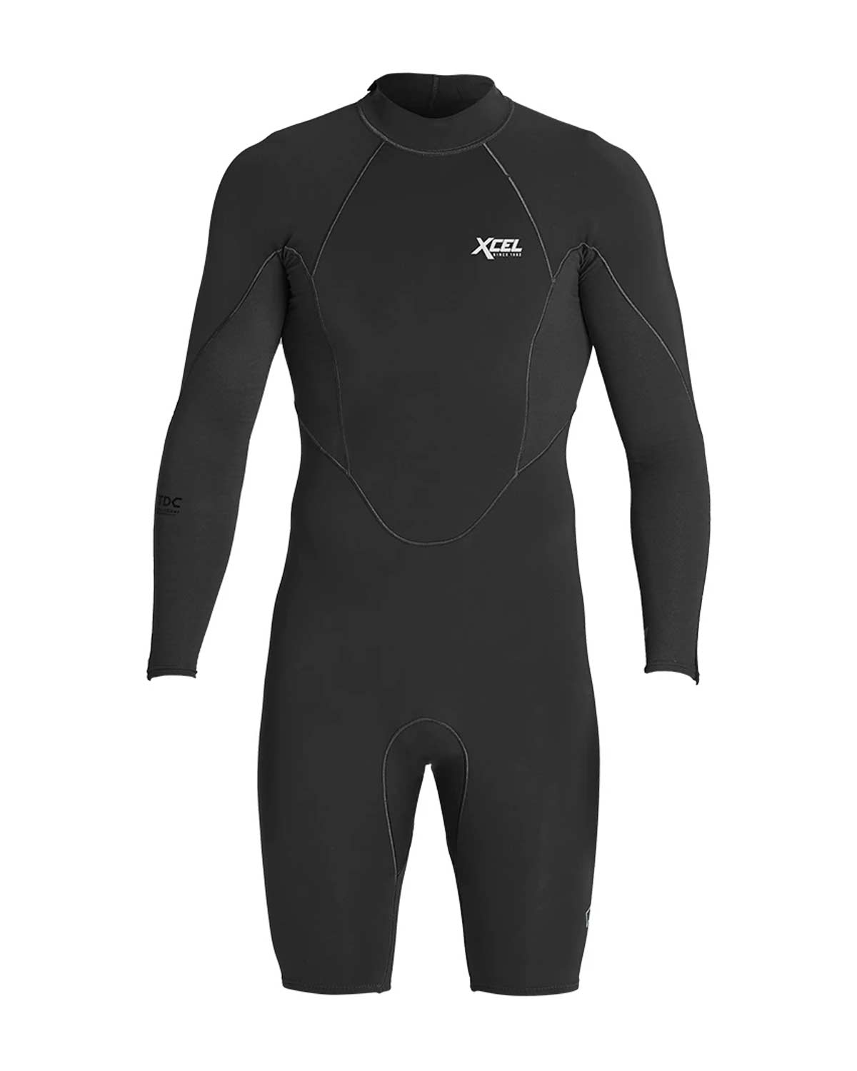 This 1/0.5mm Men's XCEL COMP X NEOSTRETCH L/S Springsuit is a naturally hydrophobic, performance-driven, and comfortable long sleeve springsuit for sure! Made with 100% performance stretch neoprene, this l/s springsuit also has TDC Smart Fiber 4-way stretch in the sleeves for even more mobility and comfort. The TDC Smart Fibers also enhance your performance and increase tissue oxygenation. Other features include: a full back zipper, 1mm of thickness in the body and 0.5mm of thickness in the arms, durable B-lock (flatlock) seams, and an engineered fit design!