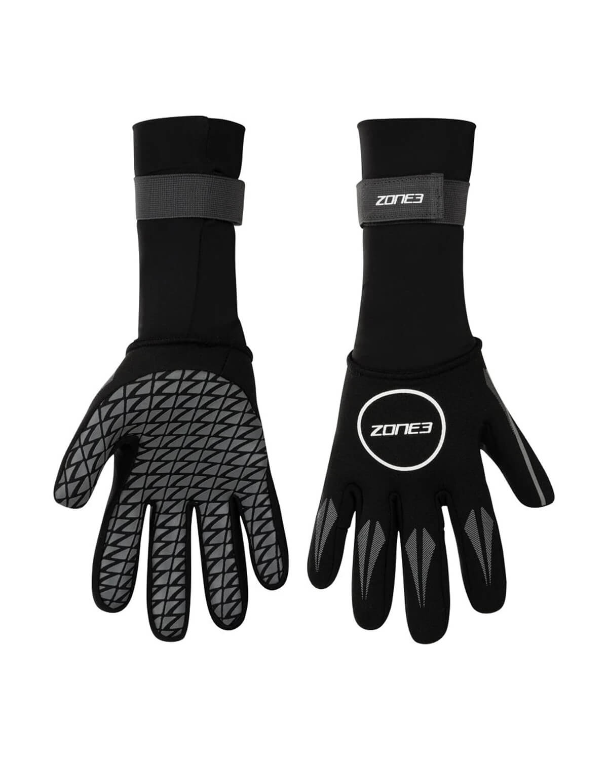 After testing most swimming gloves on the market, Zone3 found that nearly all started ballooning with water during swimming and started to slip off the hands. A design solution was found by increasing the length of the gloves, ensuring no exposed skin; and adding hook and loop fastening to keep the glove in place.