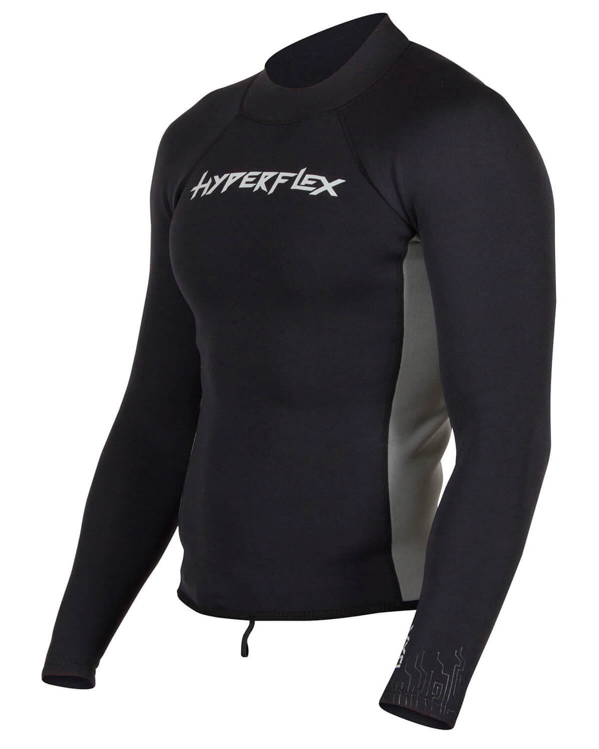 Looking for a long sleeve neoprene jacket? Look no more with this 1.5mm Men's HyperFlex VYRL Surf Jacket. Made with HyperFlex's own Quantum Foam neoprene, this l/s top is the ultimate in stretch and comfort. Flatlock seams add durability while the minimal seam design allows for a great range of motion. There's also a loop for your boardshorts.